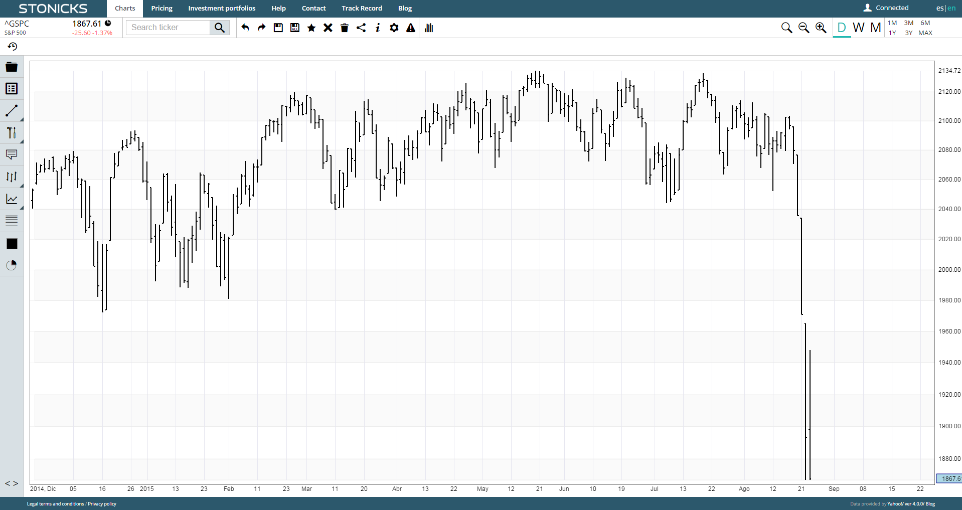 Es evidente como durante estos últimos días el indice americano se desploma empujado por la caída de los valores chinos.